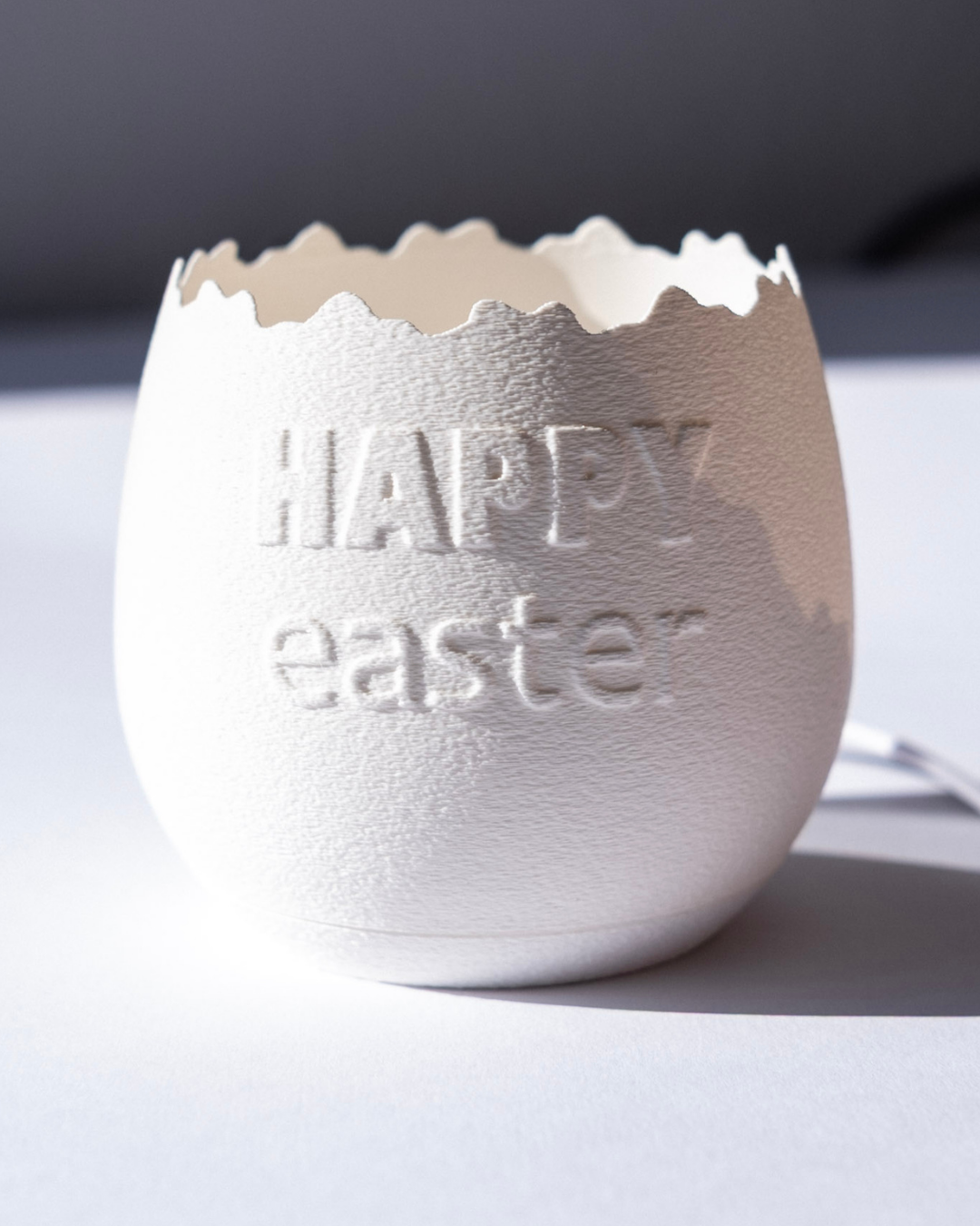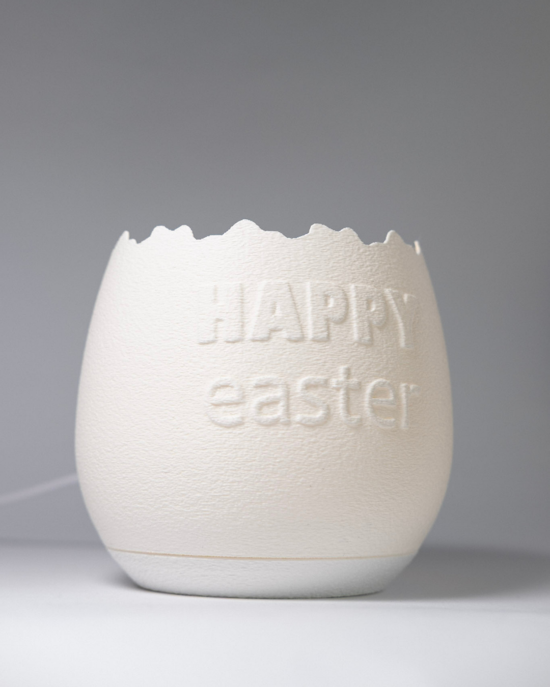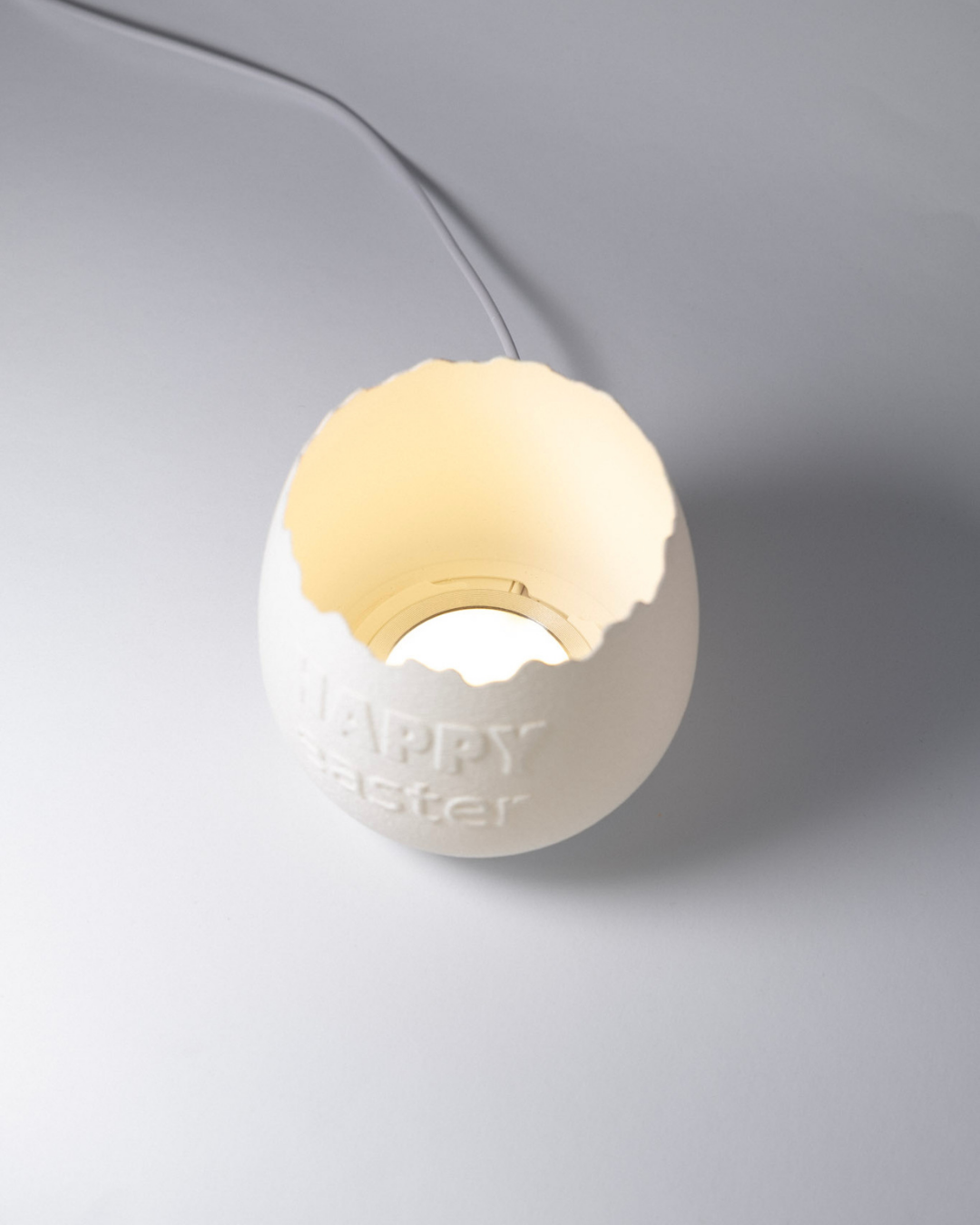 A quiet addition to your Easter decor. The Eggluminate is a minimalist, egg-shaped piece that works as either a soft ambient lamp or a simple decorative vase, featuring holiday greetings in five languages.